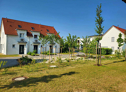 Je drei Apartments je Reihenhaus bieten einen eigenen Zugang. Die (seitlichen) Eck-Apartments (Typ 2) verfügen zusätzlich über teils bodentiefe Fenster.